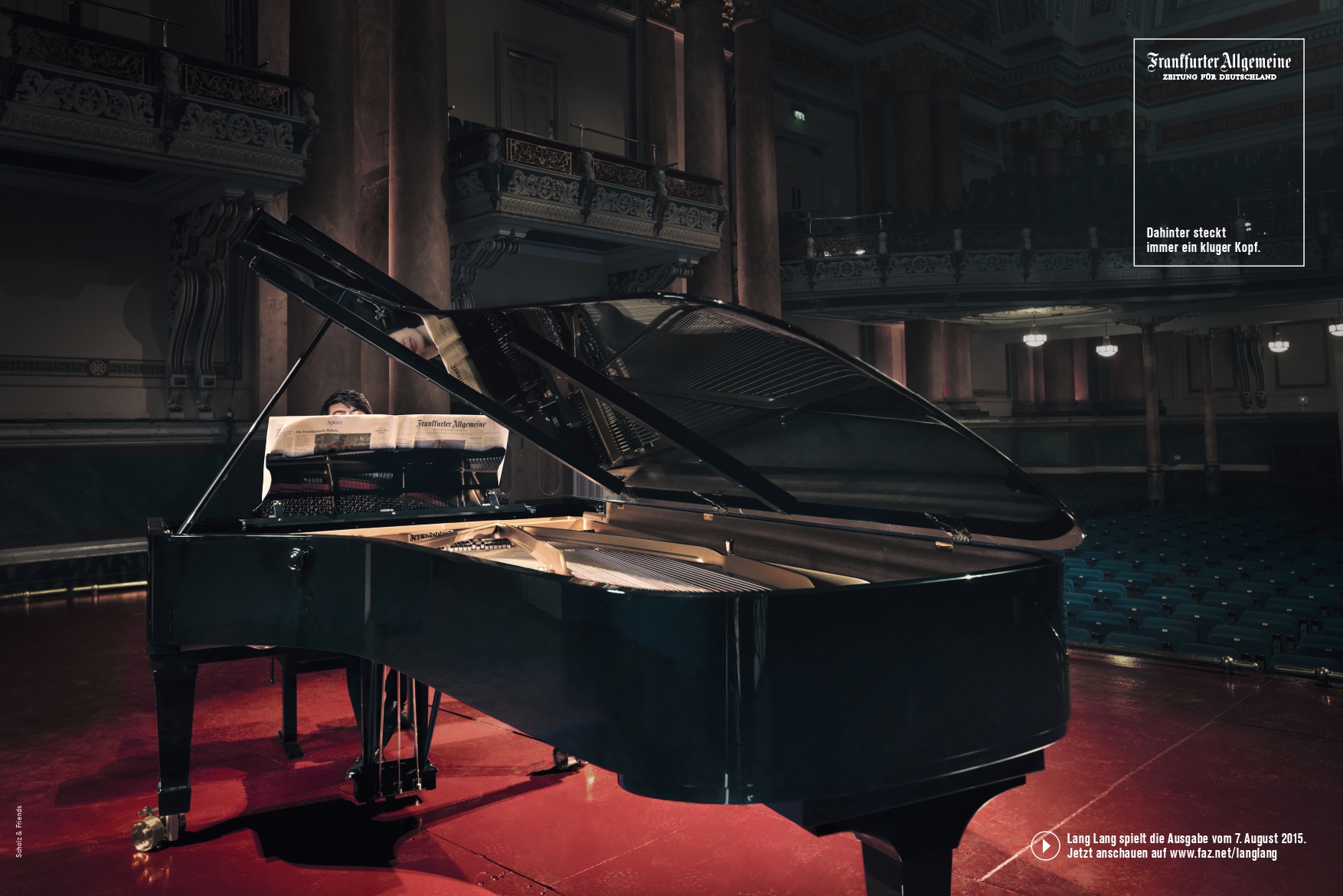 Die legendäre Anzeigenserie „Dahinter steckt immer ein kluger Kopf“ feiert ihr 20-jähriges Jubiläum mit einem besonderen Höhepunkt: Weltstar Lang Lang interpretiert die Frankfurter Allgemeine Zeitung auf seine ganz eigene Weise.