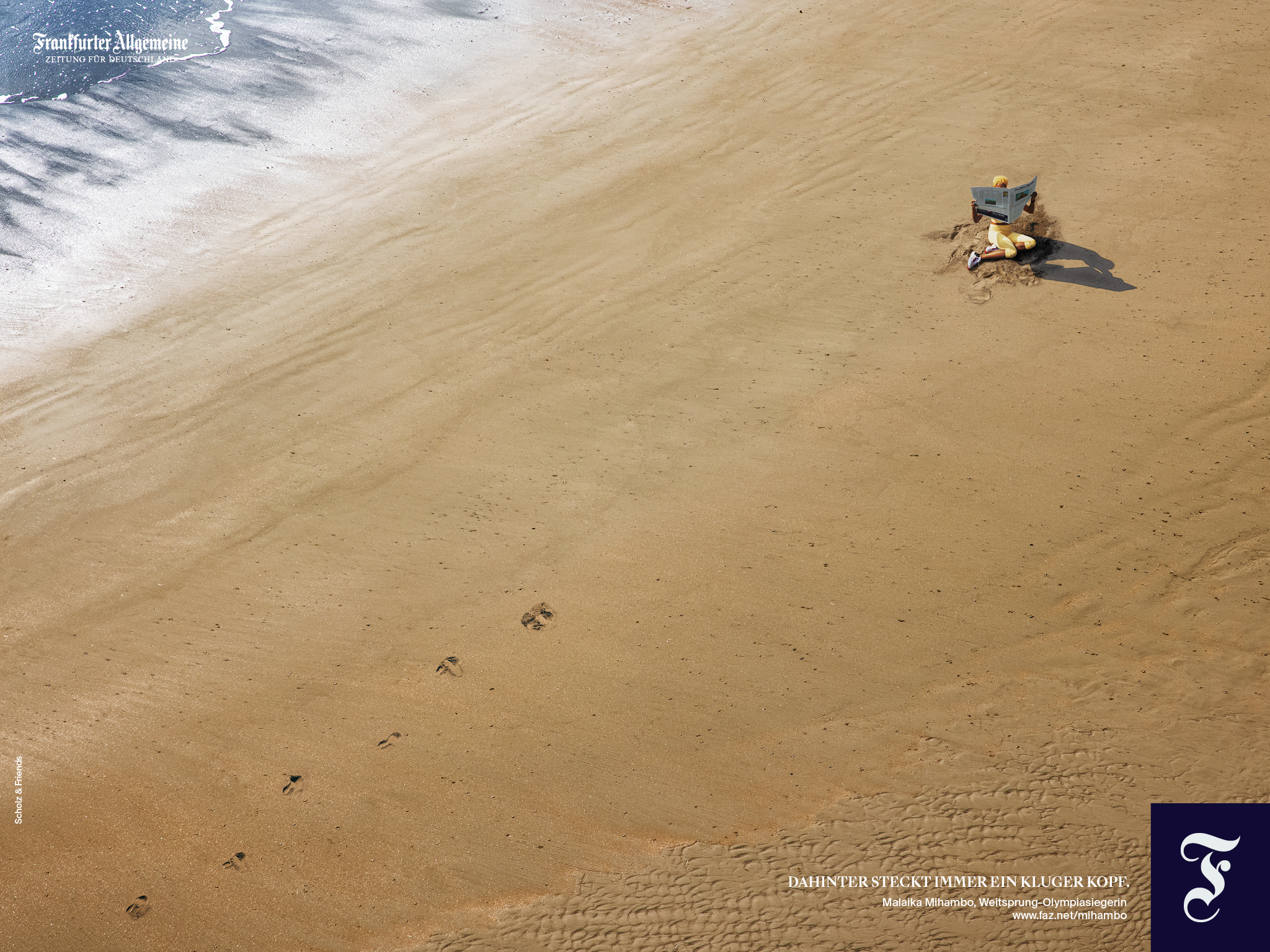 Die vielfach preisgekrönte F.A.Z.-Kampagne „Dahinter steckt immer ein kluger Kopf“ greift seit 1995 gesellschaftliche Themen und Ereignisse auf. Auch prominente Sportler waren immer wieder Teil der Serie, so zum Beispiel Jürgen Klopp, die Hochspringerin und Olympiasiegerin Heike Meier-Henkel oder die deutsche Handball-Nationalmannschaft. Alle Motive sind hier einsehbar